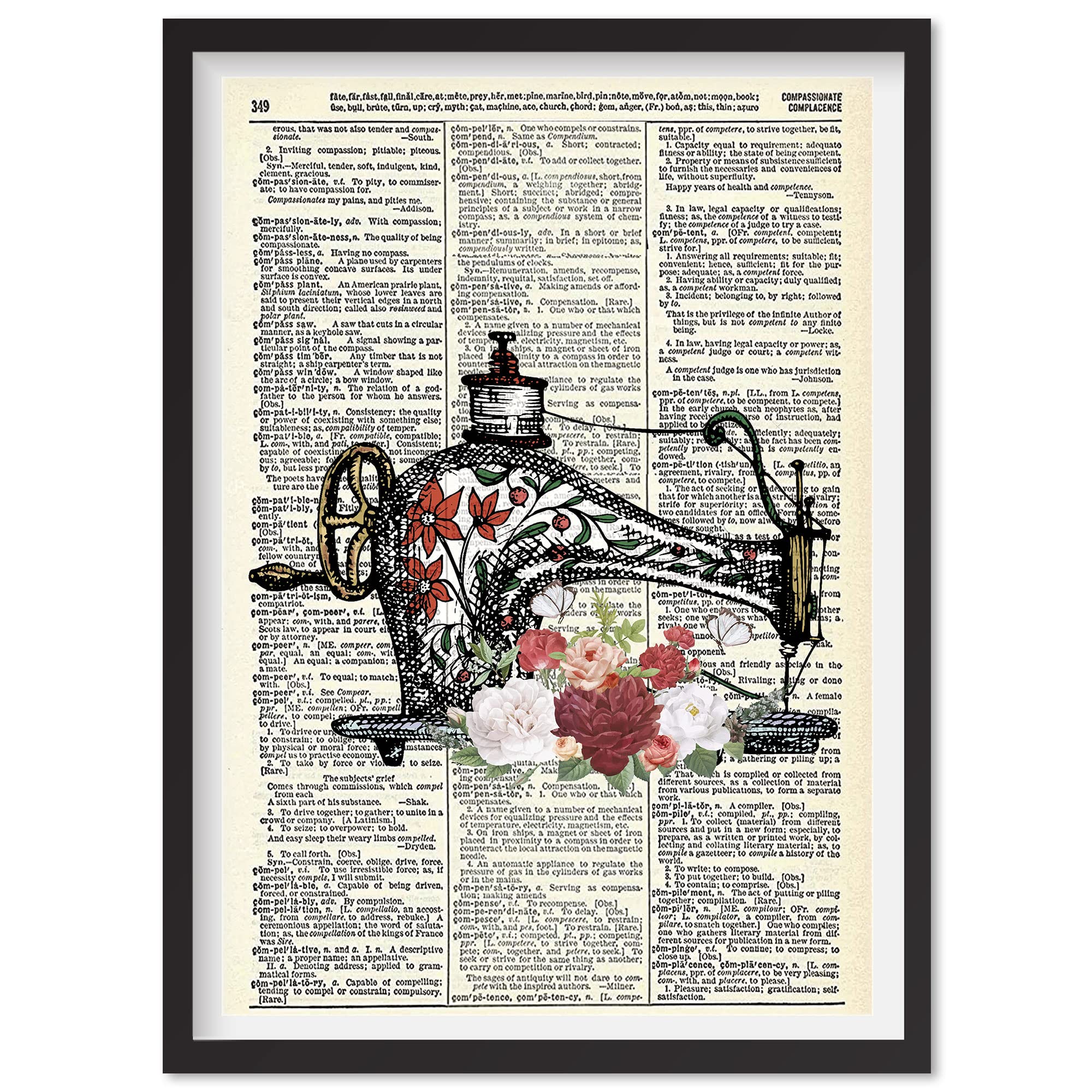 Amazon Com Luushome Vintage Sewing Machine Floral Upcycled Vintage Dictionary Art Print Sewing Room Wall Art Craft Room Decor Seamstress Wall Decor Sewing Room Artworks Gift For Sewer